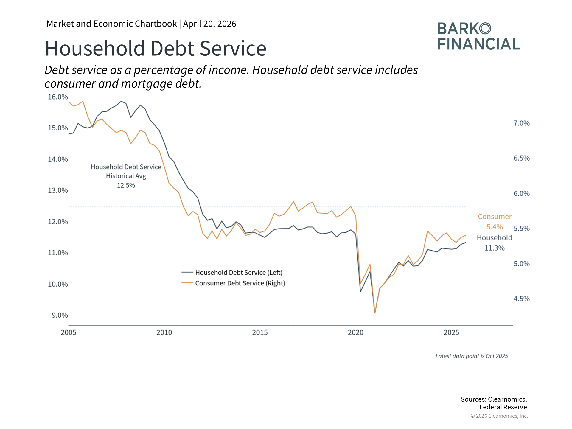 Of course, housing is not only the largest asset on most household balance sheets, but also the largest source of debt. The accompanying chart shows both household debt, which includes mortgages, and consumer debt, which does not. Even as other forms of debt rise, including credit cards and student loans, mortgage debt represents by far the largest component of total household borrowing. One encouraging aspect of today’s environment is that debt service levels (the size of debt payments relative to household income) are still moderate relative to history. Mortgage underwriting standards have also been considerably more conservative since the 2008 financial crisis, when household debt levels were far higher. Still, the burden of these debt payments is a real consideration for many households, particularly those who purchased homes in recent years at higher prices and interest rates. So, from an economic perspective, healthy home prices could continue to support consumer balance sheets and the broader economy despite mixed activity. From a financial planning perspective, it’s important for investors to have a clear understanding of their full financial picture. While headlines have focused on stock market swings and the Middle East conflict, the truth is that focusing on aspects of our financial plans closer to home may play a much larger role in achieving long-term goals. The bottom line? The housing market remains a core part of both household finances and the broader economy. With ongoing market volatility, understanding the key drivers of household wealth can help investors maintain perspective and stay focused on their long-term financial plans. | |||