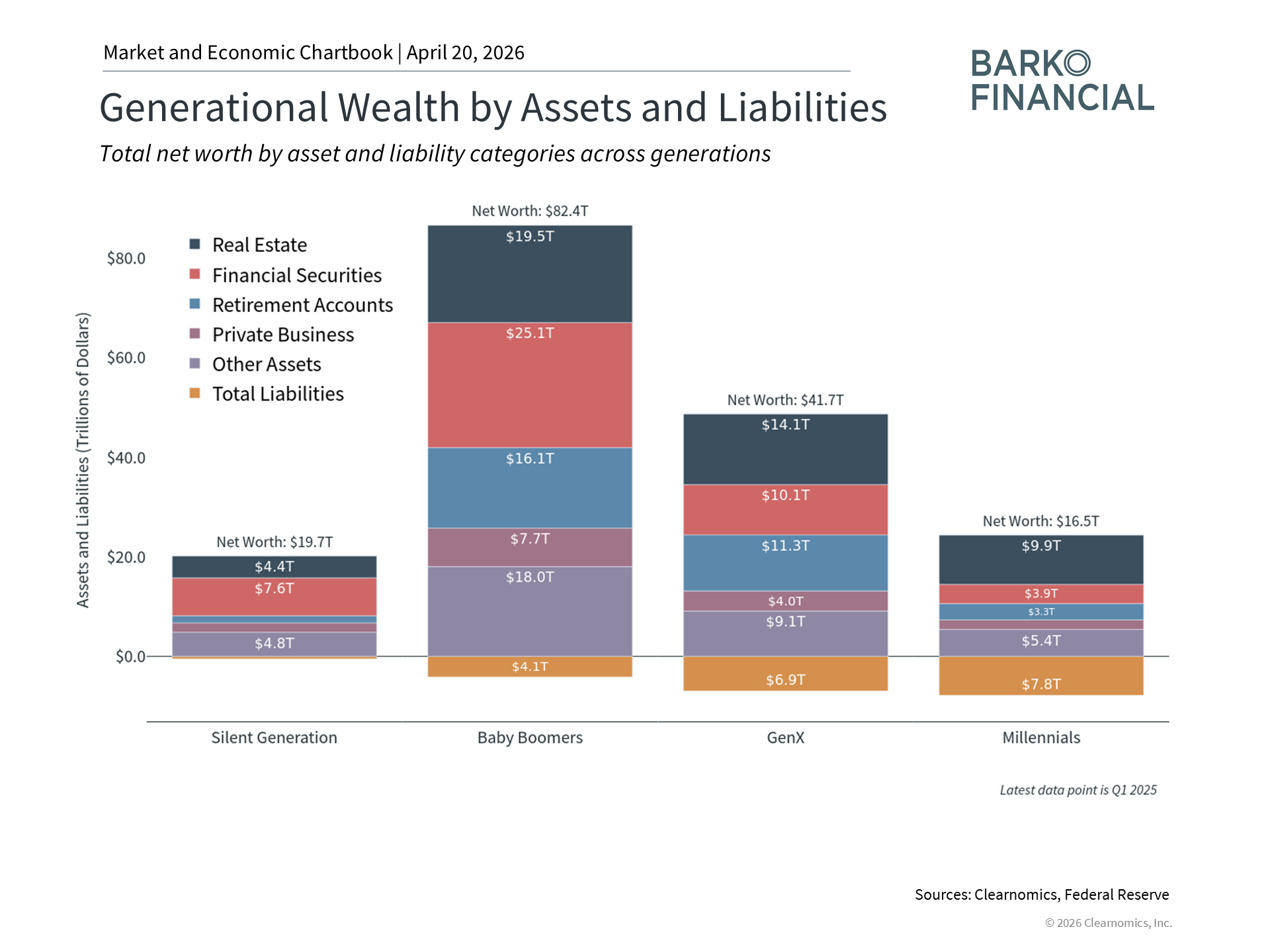 As the chart above illustrates, real estate is an important component of household net worth across all generations. For older Americans, real estate holdings often represent a significant share of total assets accumulated over decades. Baby Boomers, for instance, hold over $19.5 trillion in real estate, representing roughly 24% of their total net worth. For Gen X and Millennials, that share rises to approximately 34% and 60%, respectively. Of course, real estate is also a significant source of outstanding debt for younger households that have not had time to pay off their mortgages or benefit from decades of housing market growth. This “wealth effect” is important, especially when the stock market is volatile and the world feels uncertain. When home values rise, homeowners tend to feel more financially secure and may be more willing to spend on goods and services, supporting broader economic growth. They may feel this way even if they do not actively access their home equity, such as through a reverse mortgage or home equity line of credit. This also highlights the importance of maintaining a holistic perspective around financial planning. This is because short-term stock market swings, while never pleasant, may be less impactful to an investor’s financial picture than they may perceive, since much of their wealth is tied to other assets. In fact, depending on the investor’s specific situation, prioritizing mortgages and other forms of debt may be more helpful than focusing on the stock market. These psychological and financial effects make the housing market important as both an economic indicator and when it comes to financial planning. Inflation is another factor that is affected by housing costs, since it is the primary driver of the “shelter” category within the Consumer Price Index. Even before energy prices led to the latest jump in headline inflation, elevated shelter costs were an important reason that inflation has been slower to return to the Fed’s 2% target. Household debt levels reflect both mortgage and consumer borrowing