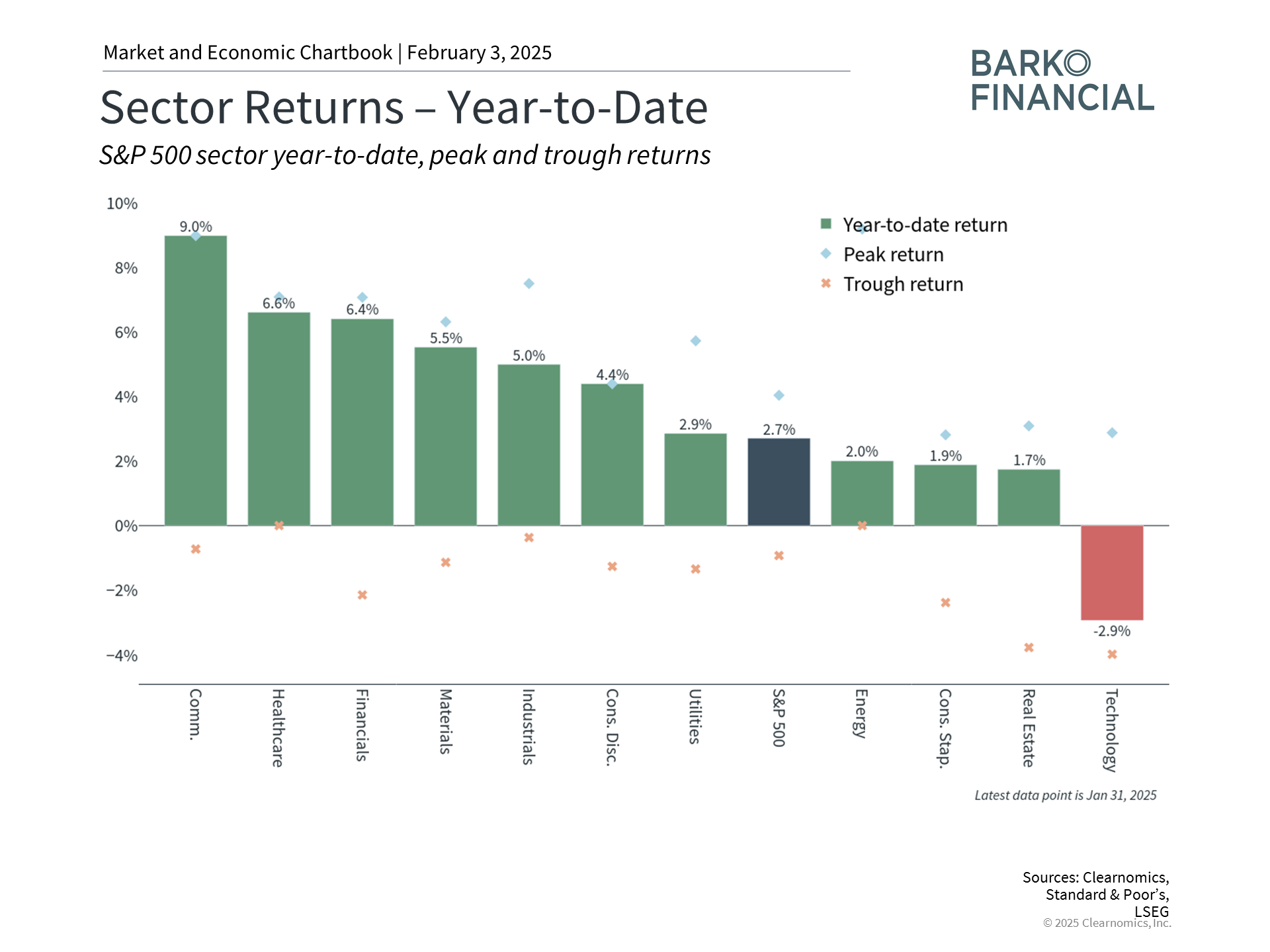January marked a positive but volatile start to the year for investors amid market shifts and policy concerns. President Trump returned to the White House and signed dozens of executive orders, the Chinese artificial intelligence company DeepSeek shook the tech industry, and the Fed hit pause on rate cuts. Looking forward, investors are focused on the latest round of tariffs and the impact on the global economy and inflation.