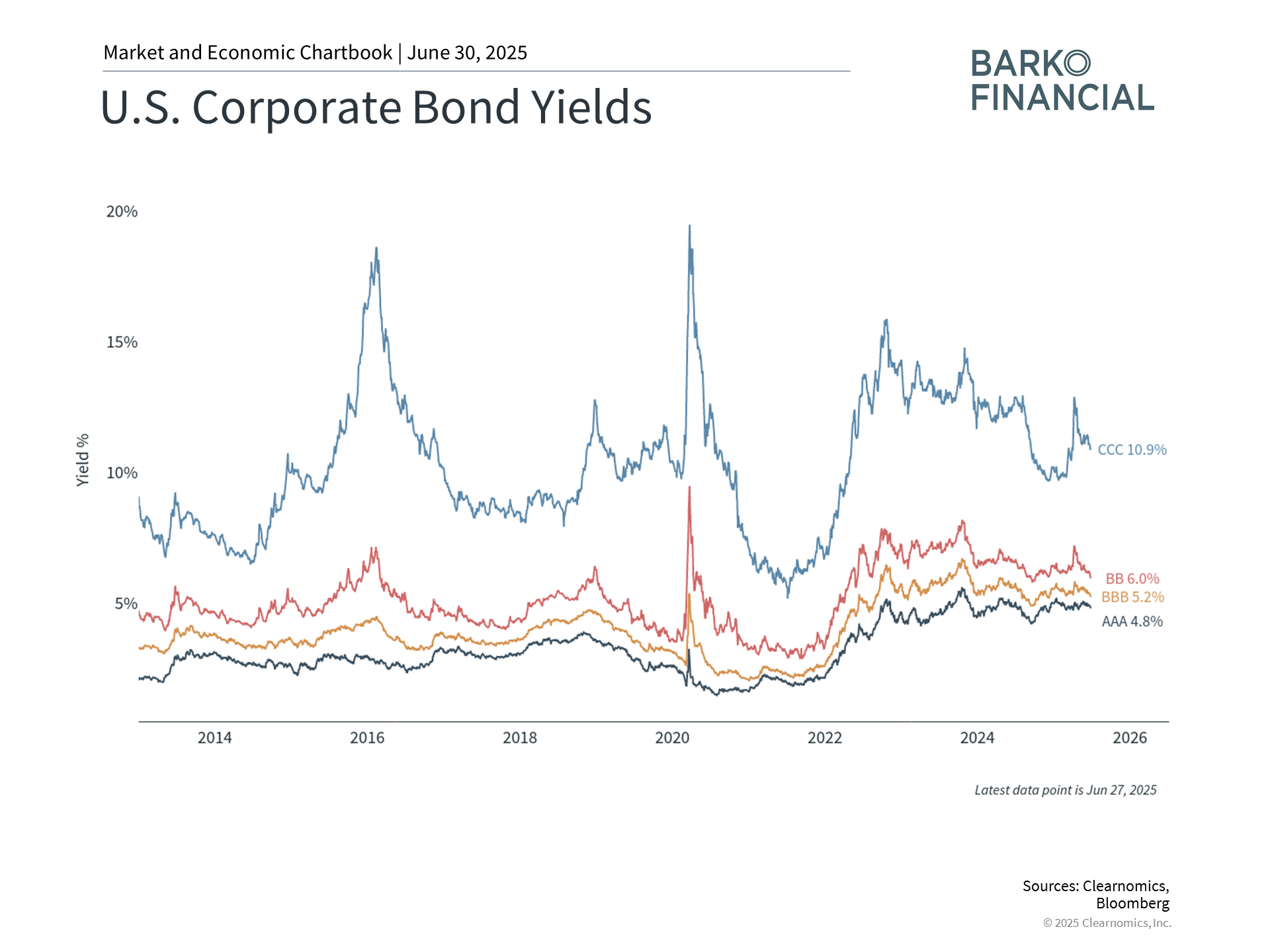 This has supported the Bloomberg U.S. Aggregate Bond Index, a diversified index of different U.S. bonds, with a 3.7% return so far this year. The corporate bond component of the index has also generated 3.7%, while high yield has outperformed with a 4.3% return.