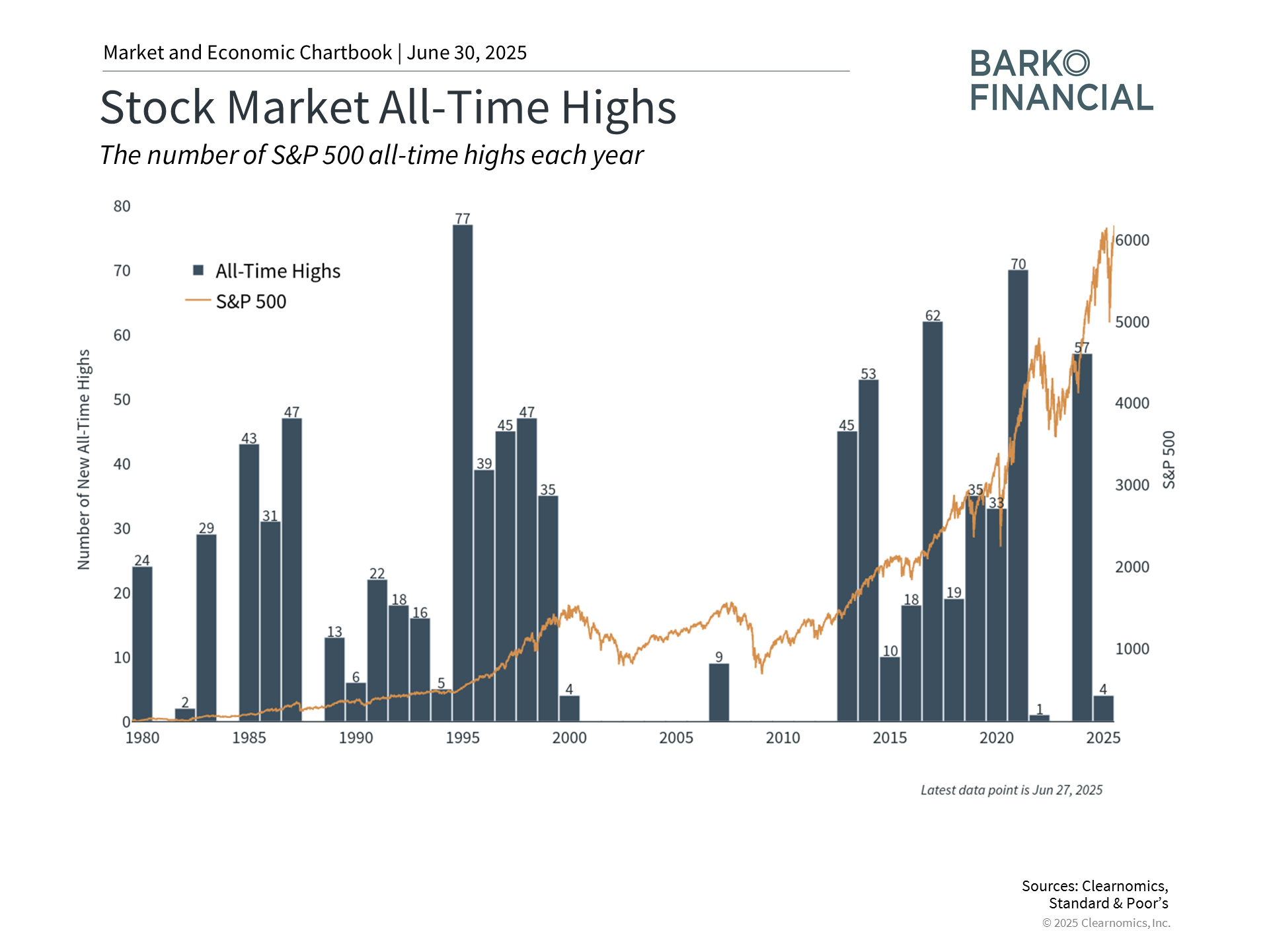 This pattern occurs due to the market and business cycle. When the economy is expanding, the stock market tends to rise alongside it. Since the mid-20th century, these cycles have grown longer, with bull markets far exceeding bear markets in duration and returns, a fact that has benefited those who stick to their financial plans. Thus, new all-time highs are not necessarily, on their own, reasons to worry or a signal that the market is about to reverse.