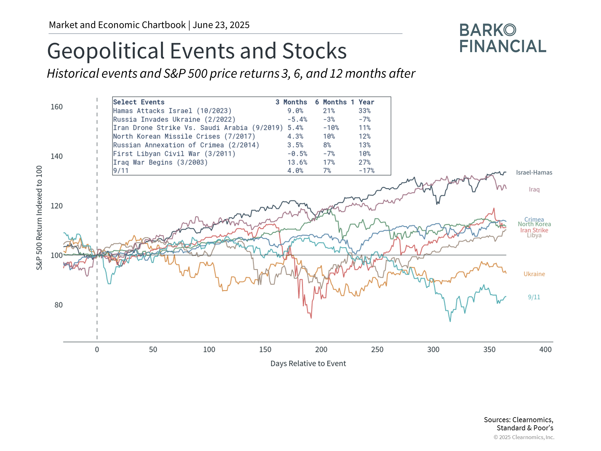 For investors concerned about escalating global conflicts, adopting a broader perspective proves helpful. From World War II through the Iraq War, markets may have responded to conflicts short-term, but investment fundamentals drove long-term performance.